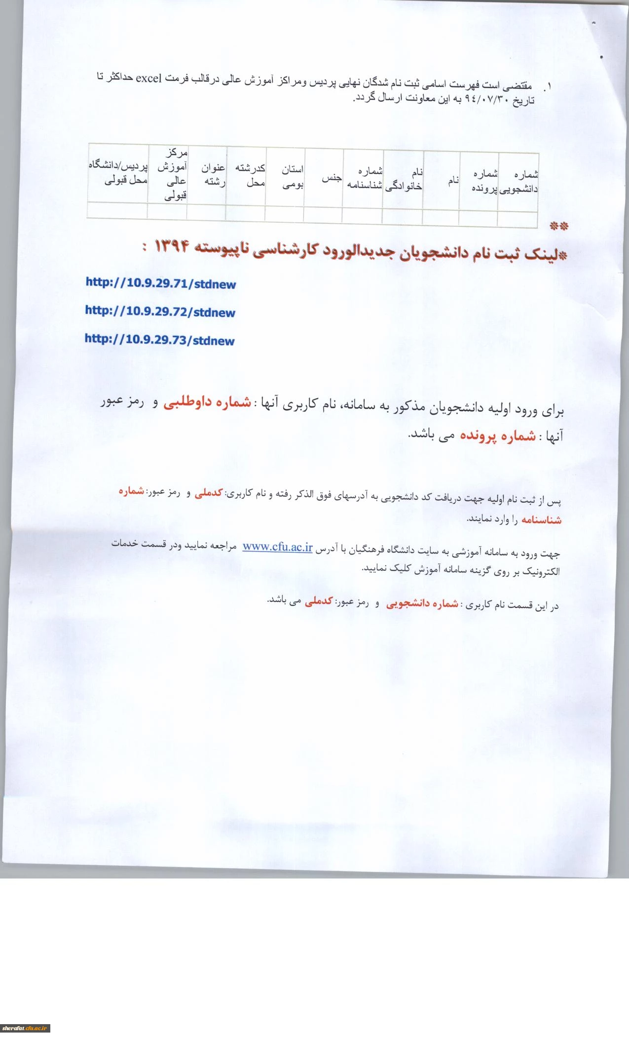 قابل توجه دانشجویان کارشناسی ناپیوسته - ورود ی 94 4