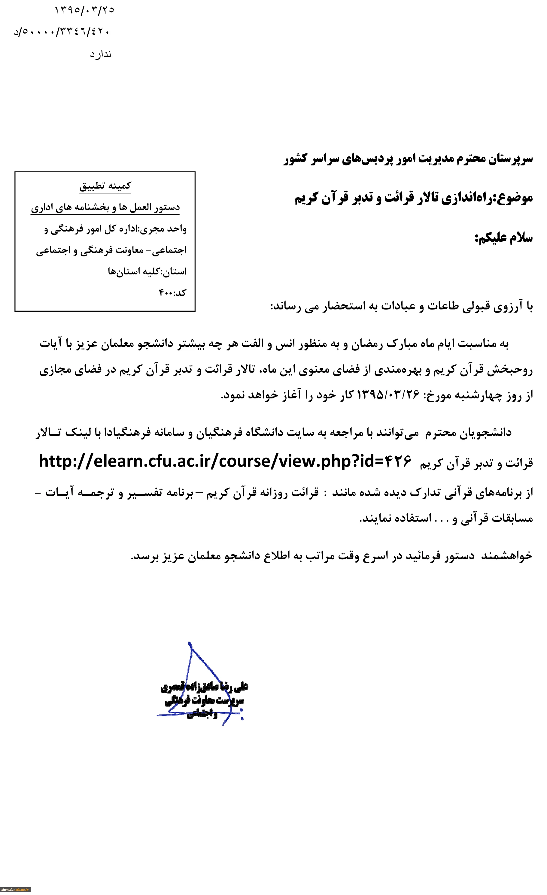 امتیاز دهید : قابل توجه دانشجویان عزیز راه اندازی تالار قرائت و تدبر قرآن کریم 2 سهشنبه 1 تیر 1395 ساعت 11:30