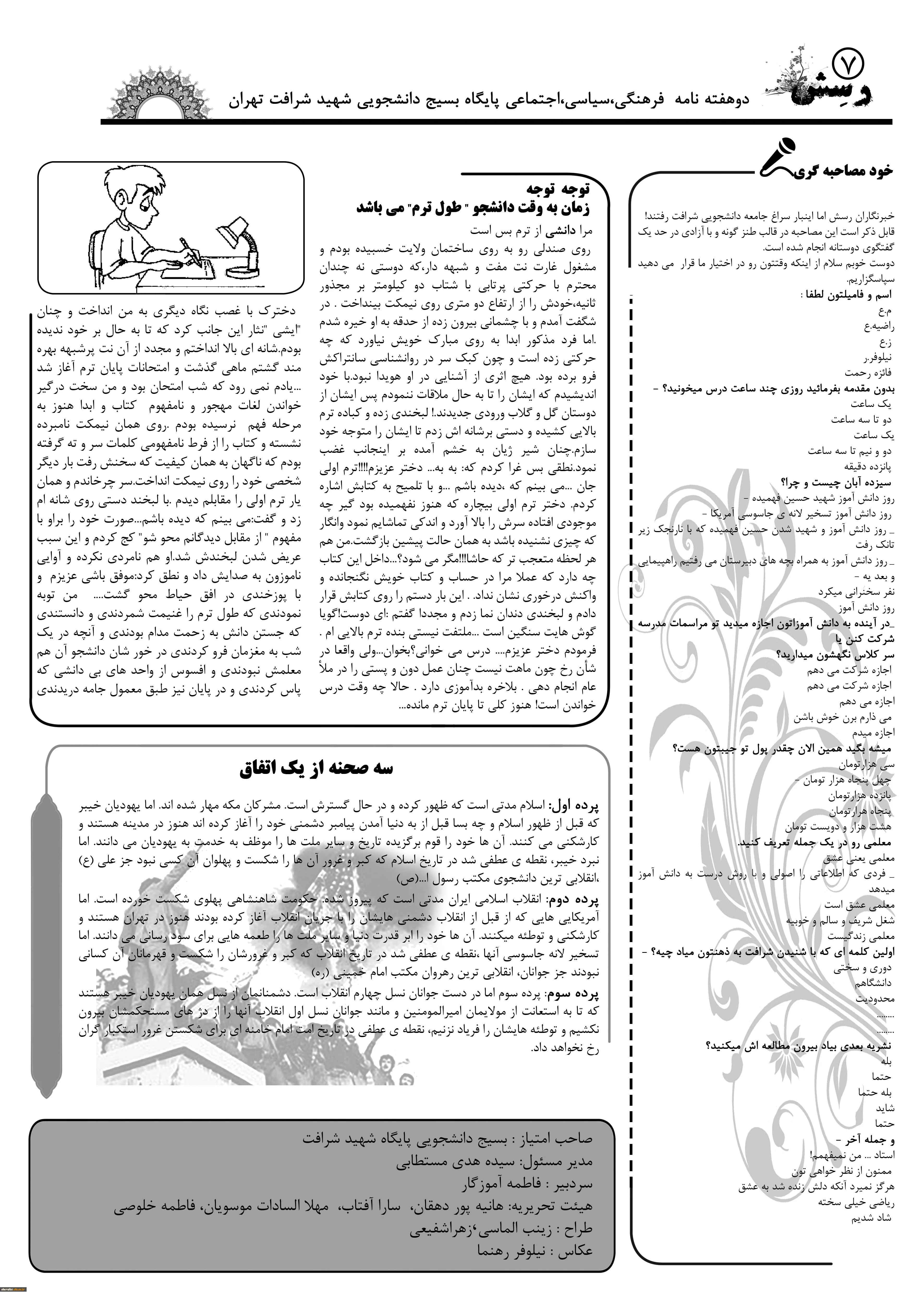 دوهفته نامه فرهنگی ، سیاسی ، اجتماعی پایگاه بسیج دانشجویی مر کز آموزش عالی شهید شرافت 3