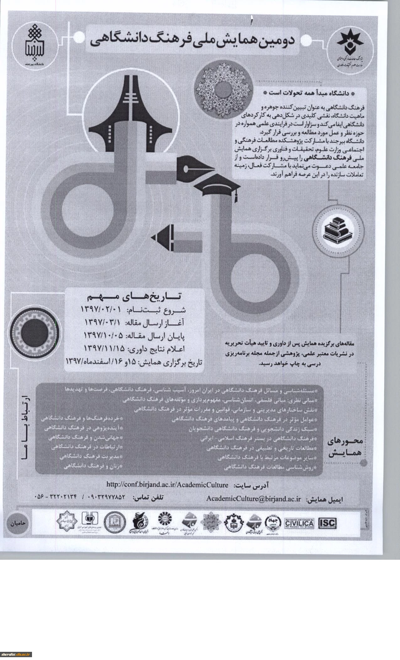 امتیاز دهید : قابل توجه اعضای هیات علمی و دانشجویان دومین همایش ملی فرهنگ دانشگاهی 2 دوشنبه 3 دی 1397 ساعت 9:44