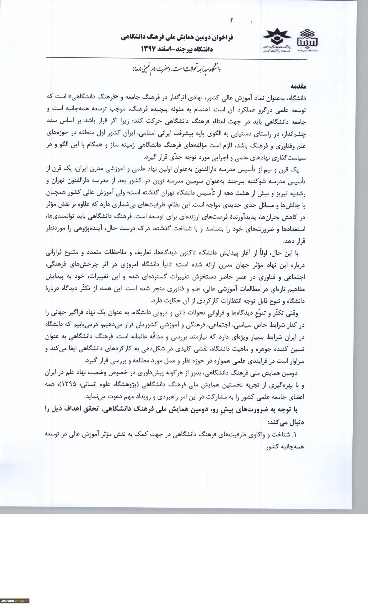 امتیاز دهید : قابل توجه اعضای هیات علمی و دانشجویان دومین همایش ملی فرهنگ دانشگاهی 3 دوشنبه 3 دی 1397 ساعت 9:44