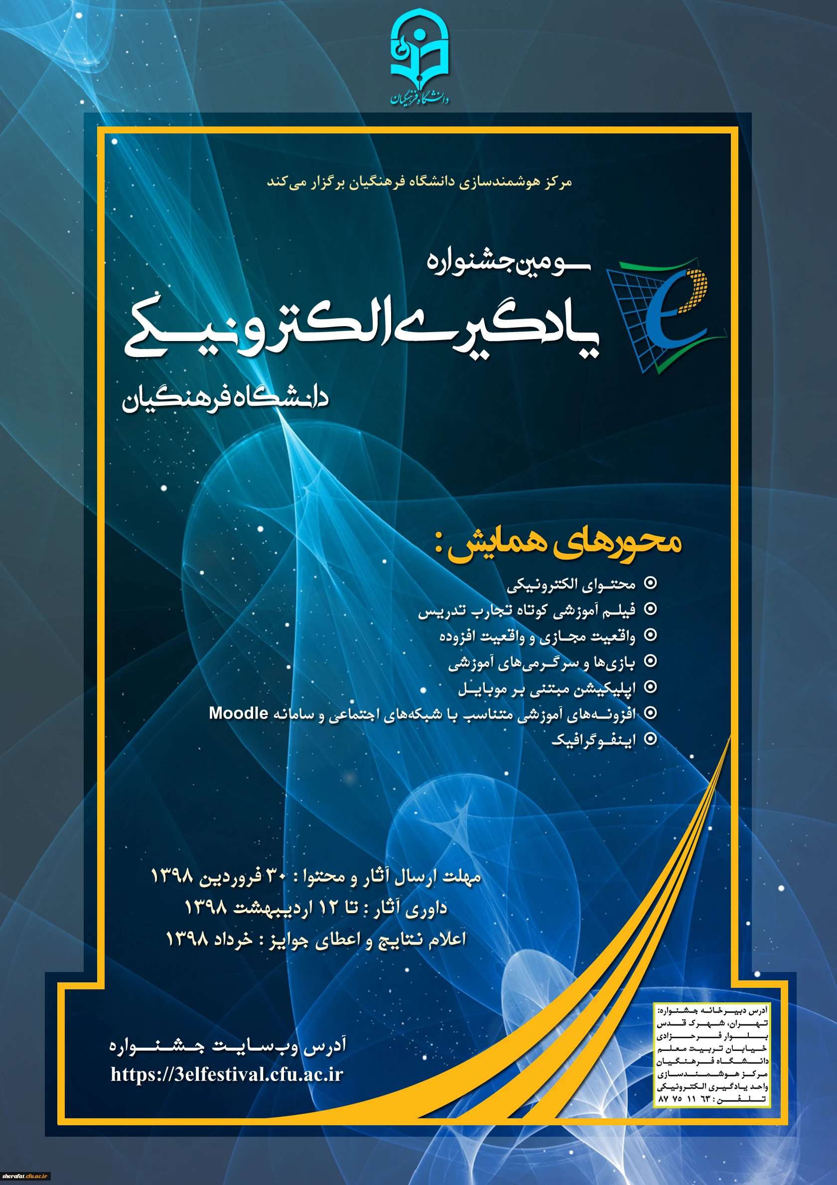 قابل توجه اساتید، کارکنان و دانشجومعلمان دانشگاه فرهنگیان سومین جشنواره یادگیری الکترونیکی 2