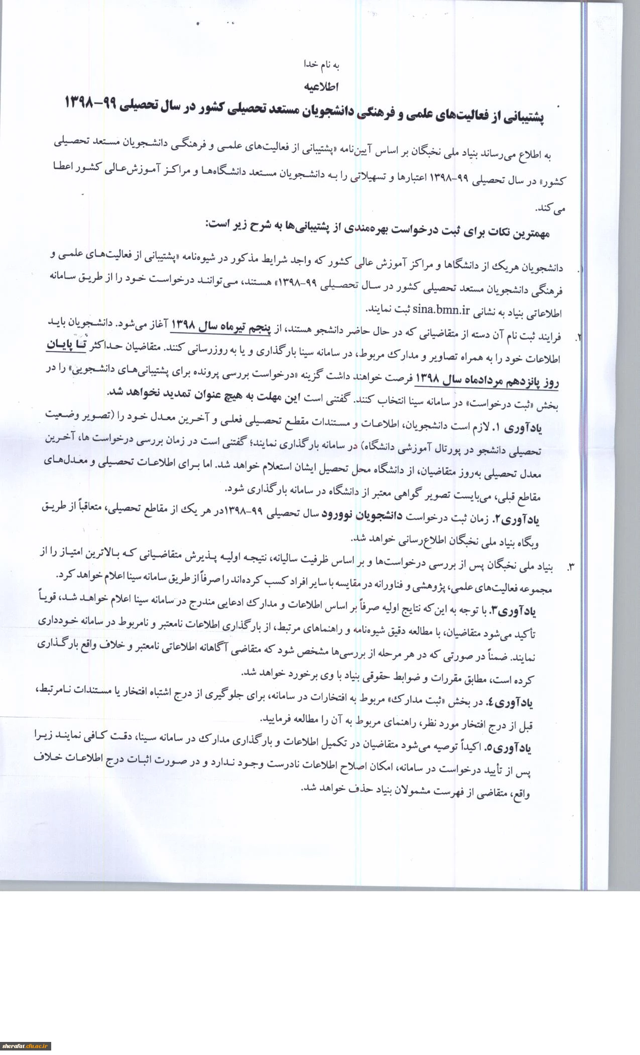 امتیاز دهید : فراخوان ثبت نام برای بهره مندی از تسهیلات دانشجویی بنیاد ملی نخبگان 2 دوشنبه 7 مرداد 1398 ساعت 12:49