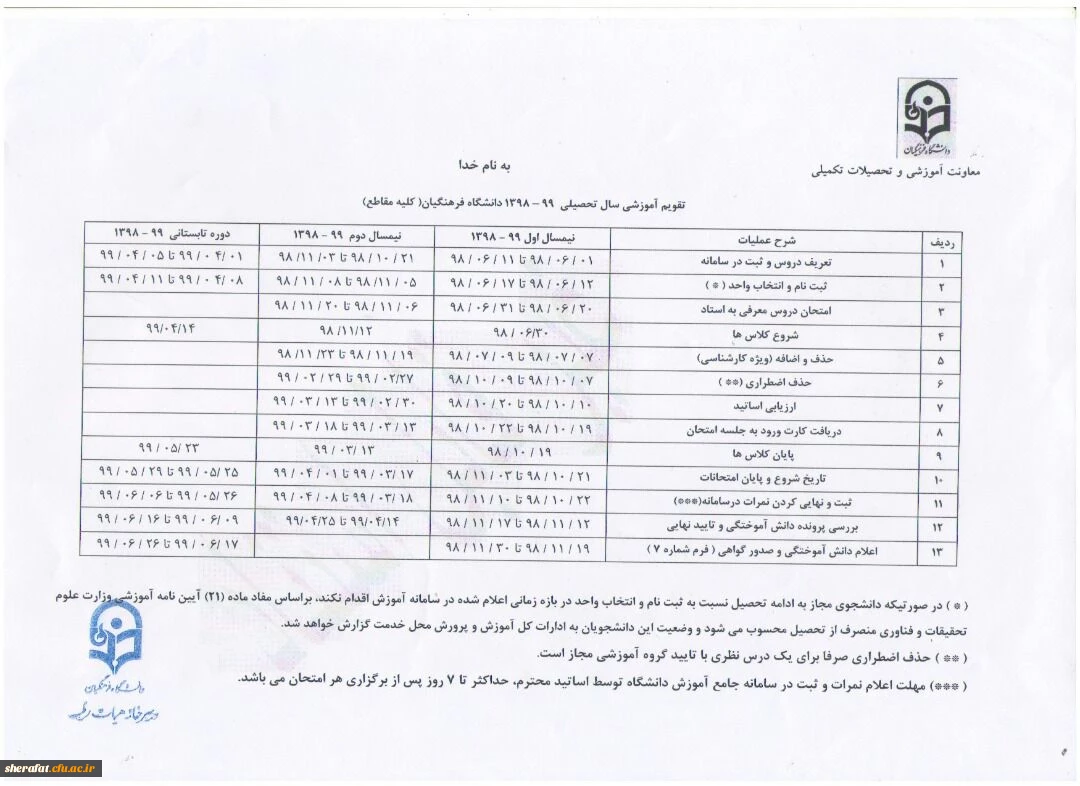 امتیاز دهید : تقویم آموزشی سال تحصیلی 99-1398 دانشگاه فرهنگیان ( کلیه مقاطع) 2 یکشنبه 13 بهمن 1398 ساعت 9:24