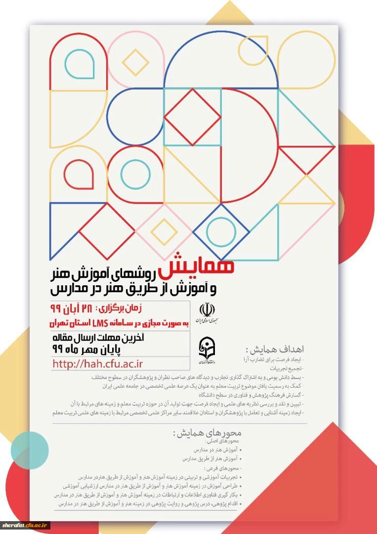 برگزاری اولین همایش علمی روش های آموزش هنر و آموزش از طریق هنر در مدارس و دومین جشنواره کشوری تجربیات برتر آموزشی تربیتی اساتید و معلمان در آموزش هنر 2