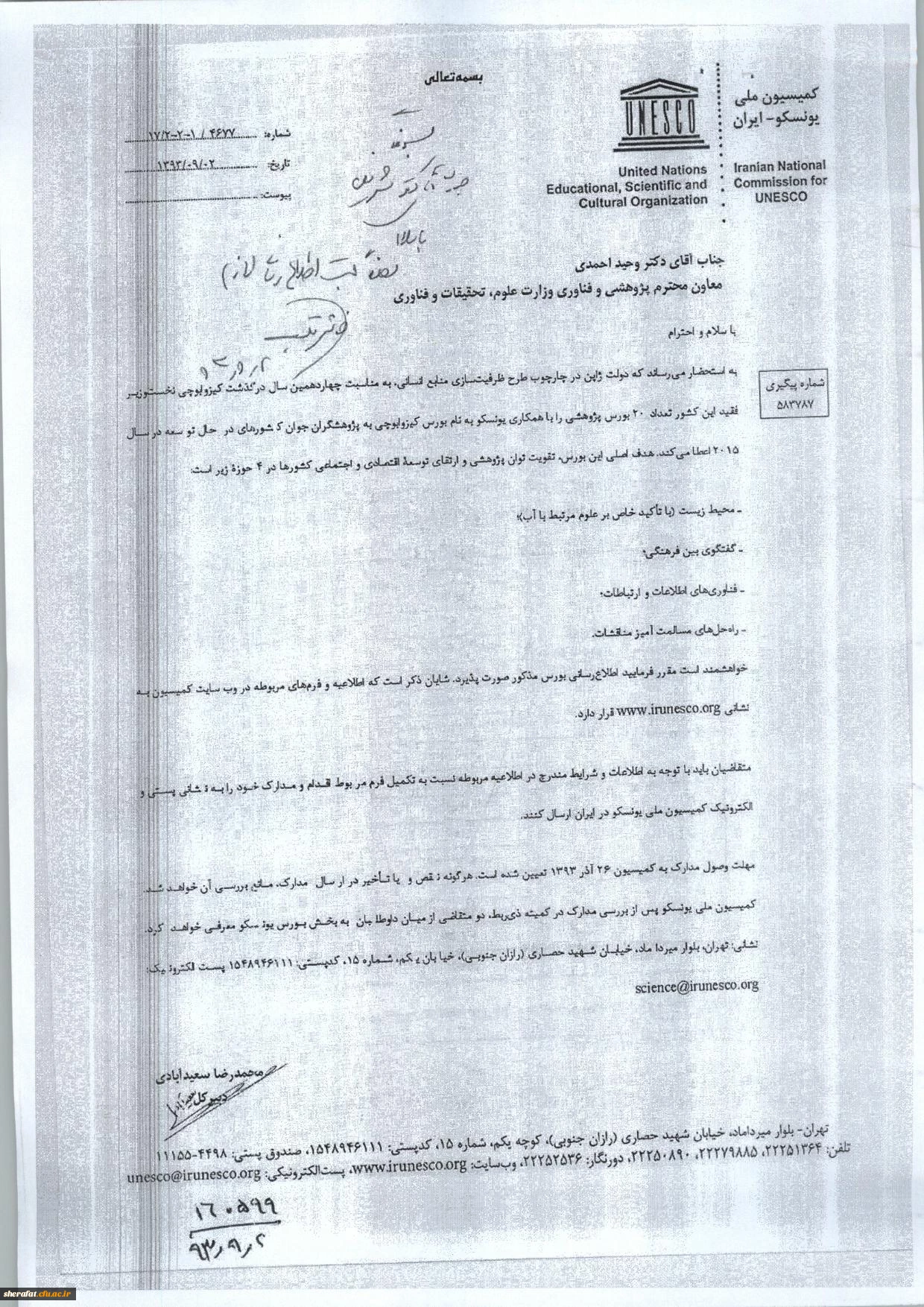 قابل توجه مدرسین و همکاران محترم بورس پژوهشی یونسکو 3