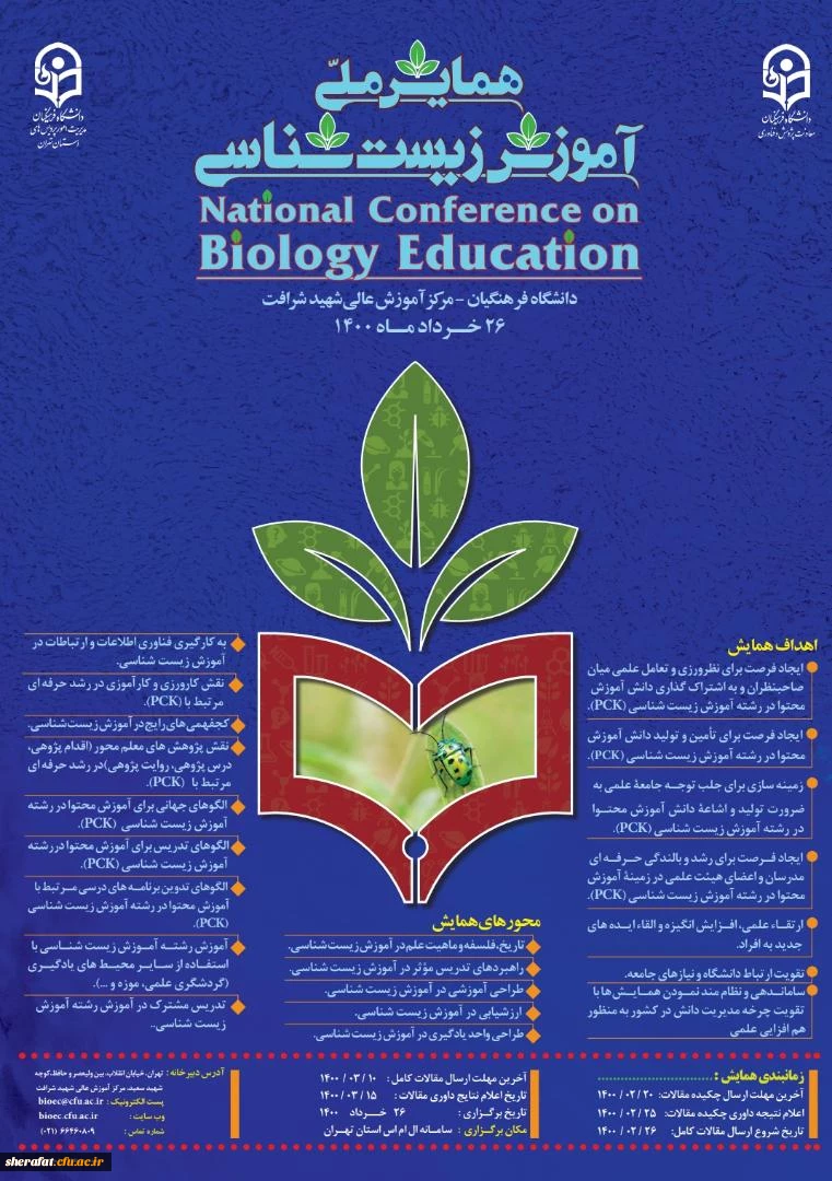 امتیاز دهید : تمدید مهلت ارسال چکیده مقالات دومین همایش ملی آموزش زیست شناسی 2 سهشنبه 7 اردیبهشت 1400 ساعت 9:32