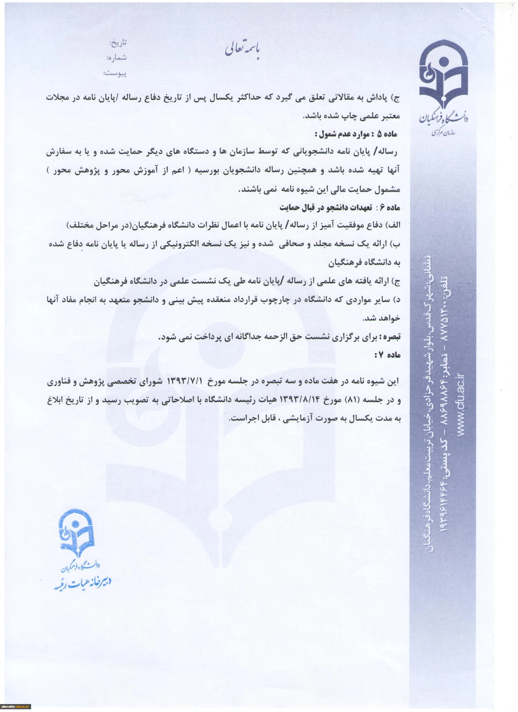 قابل توجه مدرسین و همکاران عزیز شیوه نامه حمایت از رساله دکترا و پایان نامه های کارشناسی ارشد 5