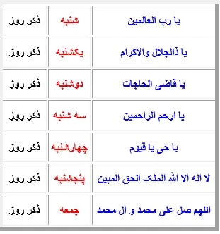 ذکر روزهای هفته